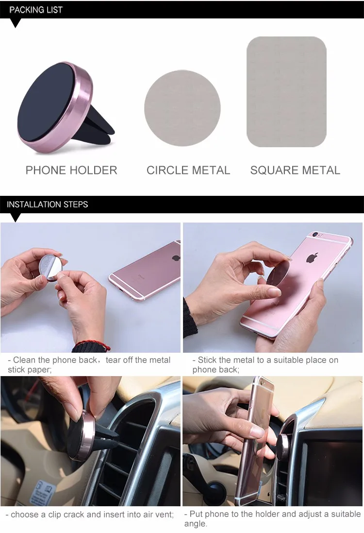 Car Holder Mini Air Vent Mount Magnet Magnetic Cell Phone Mobile Holder Universal For iPhone 5 6 6s 7 Smartphone GPS Bracket Stand Support