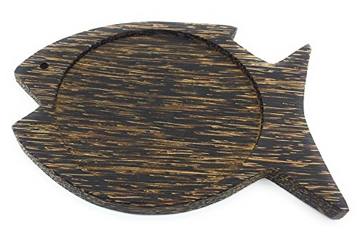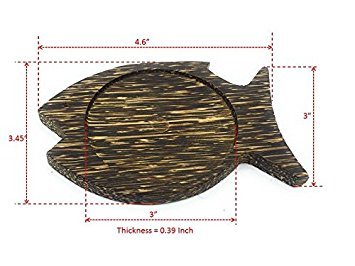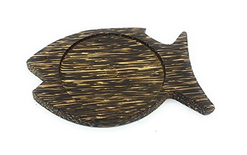 WD-Thailand Hand Craft Palm Wooden Coasters for for Drinks Tea Cups Saucers,Table topper decoration set serving on dining Table set (Fish shape Palm Wood) 4 set