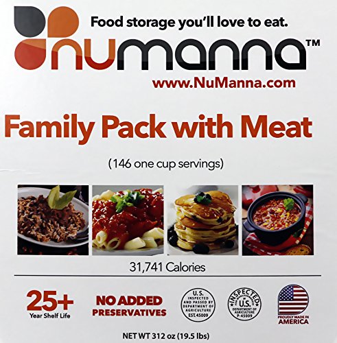 NuManna Family Pack w/ Meat 146 Servings, Emergency Survival Food Storage Kit, Separate Rations, in a Bucket, 25 Plus Year Shelf Life, GMO-Free