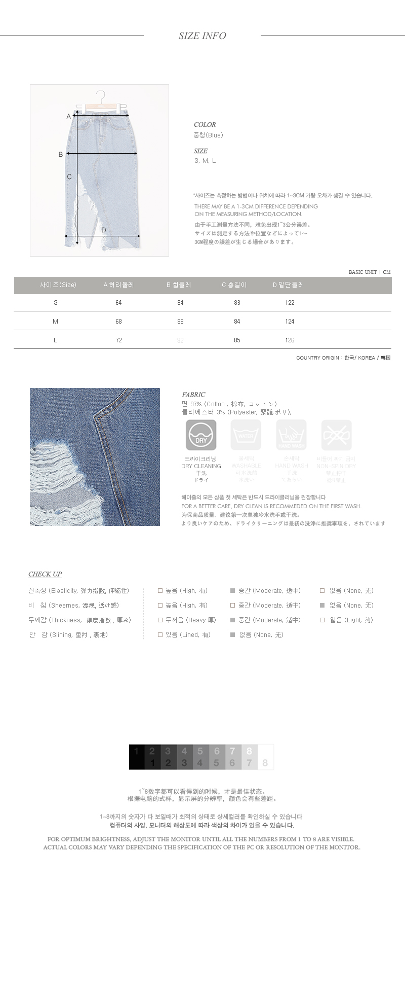 빈티지한 헤짐디테일이 돋보이는 스타일리시한 데님 스커트 아이템을 소개해드려요~^^ 언발란스한 헤짐과 컷팅 디테일로 유니크하고 스타일이 돋보이는 코디매치를 할 수 있어요~ 셔츠,티셔츠 등 다양한 아이템들과 부담없이 즐길 수 있는 스타일리시한 스커트 아이템이랍니다~ 적당한 두께감으로 계절에 구애없이 데일리하게 연출할 수 있는 스커트 아이템을 적극 추천해드려요~