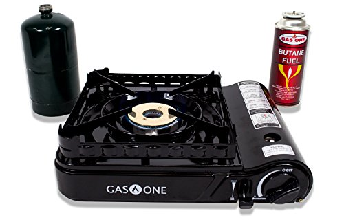 GAS ONE GS-3900P Dual Fuel Propane or Butane Portable stove with Brass Burner Head, Dual Spiral Flame 15,000 BTU Gas Stove with Convenient Carrying Case Latest 2017 Model