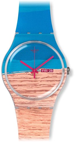 -. Title : Swatch SUOK706 Blue Pine Blue Brown Day Date Dial Silicone Band Unisex Watch NEW