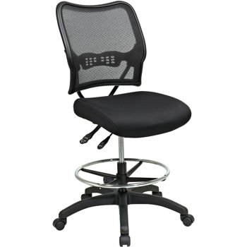 -. Binding : Office Product -. Brand : Office Star -. Color : Black -. Feature : Features: Thick Black Padded Mesh Seat and Air Grid® Back with Built-in Lumbar Support One Touch Pneumatic Seat Height Adjustment Dual Function Control / Adjustable Chrome Foot ring Nylon Base with Dual Wheel Carpet Casters / Seat Size: 19.5"W x 20"D x 4"T Back Size: 20"W x 19"H Overall Size: 45"H x 20"W x 26"D / Seat Height Min: 19.75" Seat Height Max: 27.25" Seat Travel: 7.5" / Weight: 40 lbs. -. Label : Office Star -. Manufacturer : Office Star -. PackageQuantity : 1 -. ProductGroup : Office Product -. ProductTypeName : OFFICE_PRODUCTS -. Publisher : Office Star -. Studio : Office Star -. Title : Deluxe Air Grid Back Drafting Chair with Mesh Seat and Dual Function Control