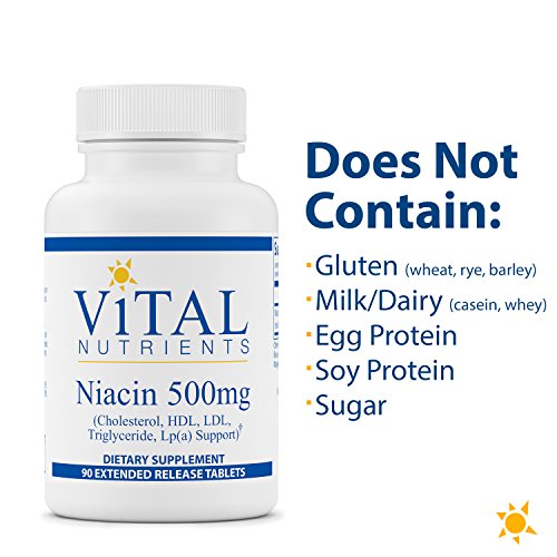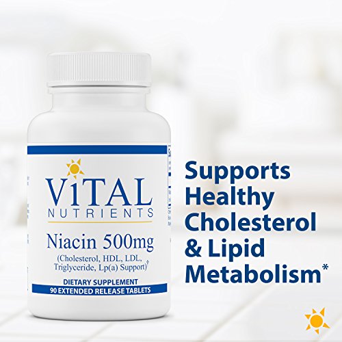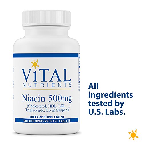 Niacin 500mg Extended Release tablets contain Niacin (vitamin B3), a water soluble vitamin with an important role in cellular metabolism. Niacin has a very long clinical use history and has been shown to support lipid metabolism, Cholesterol, LDL, Lipoprotein (a) and HDL. Niacin has an impressive record of nutritional supportive effects on cholesterol metabolism that are documented in numerous clinical trials. Clinical studies also suggest niacin may also support the peripheral circulatory system and healthy fibrinogen production. Vital Nutrients Niacin 500mg Extended Release Tablets contain a time-release matrix that slowly secretes niacin into the body. Clinical trials have demonstrated bioavailability and tolerance of Vital Nutrients extended release Niacin. 1500 mg per day supports lipid metabolism. Vital Nutrients mission is to manufacture superior quality nutraceuticals that exceed both industry and government standards and provide clinically effective results. They provide over 200 science-based and clinically effective products. They have a comprehensive quality assurance program to ensure that purity and potency is consistently met on every product that they manufacture. Vital Nutrients uses independent U.S. ethical laboratories to test all raw materials and finished products. Each raw material is tested, regardless of origin, for purity and potency. All finished products are tested through a real time stability protocol for expiration date validation. They are an FDA Inspected facility that exceeds FDA cGMPs, and a member of the NPA. Ingredients Amount Per Serving: 1 tablet contain: Niacin (extended release) 500mg. Other ingredients: Vegetable Waxes (Rice Bran, and/or Carnauba), Stearic Acid (Veg), Magnesium Stearate (Veg), and Silica.Feature