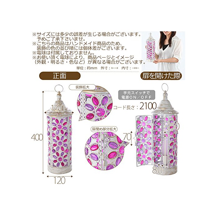 재질:스틸,아크릴,개말수?まぐれ:1,물림쇠:E12(~40W까지 대응)고, 백열구,전구형 형광등,LED전구 사용 가능,사용 전구:1개(※전구는 부속하고 있지 않습니다)고, 코드 길이:2100,중간 스위치