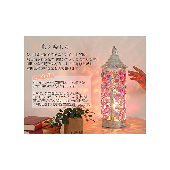 앤틱조에 가공 된 화이트의 프레임과,꽃무늬를 생산하는 아크릴 비즈가 작고 예쁘장스러운 테이블 라이트입니다.세부까지 구애된 디자인 이 되어 있고,방의 오브제로서 액센트로도 됩니다.