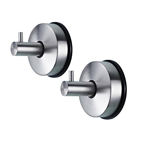 Yohom 2Pcs SUS 304 Stainless Steel Vacuum Suction Cup Hooks Holder - Removable Bathroom Shower Heavy Duty Towel Rack and Kitchen Organizer for Towel, Bathrobe and Loofah,Brushed Finish