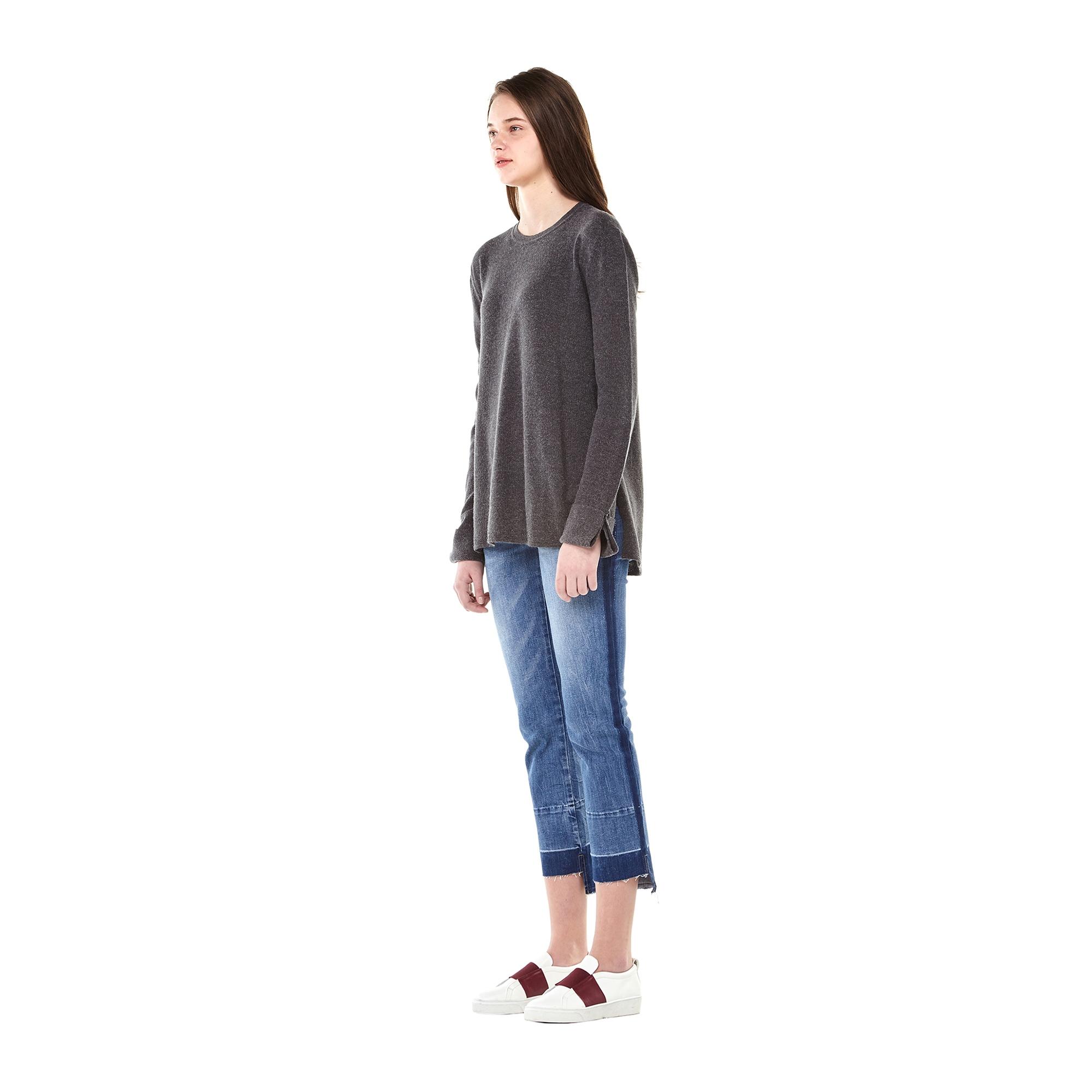 컬렉션 : 2017 Spring/Summer 디자인 포인트 : - 사이드 슬릿 디테일과 언밸런스한 길이감이 돋보이는 풀오버 형식의 니트- 라운드넥과 베이직한 핏으로 데일리로 스타일링 하기 좋은 아이템 스타일링 추천 : 다양한 워싱의 데님팬츠 혹은 스키니핏의 팬츠와 매치하여 심플한 스타일링을 할 수 있음