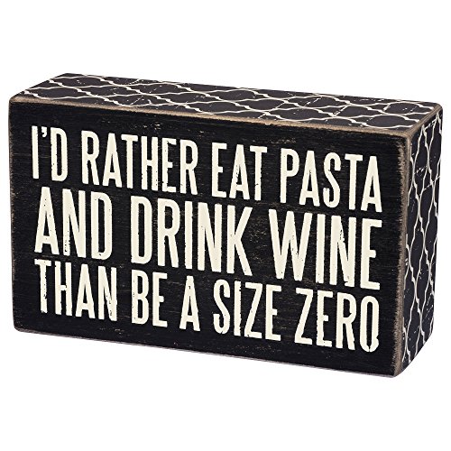 Primitives by Kathy Box Sign-“I’d Rather Eat Pasta and Dring Wine Than Be a Size Zero"