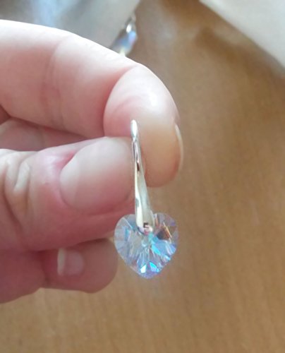 - Title : Small Blue Aurora Borealis Heart Earrings for Women Made with Sterling Silver and Swarovski Crystals