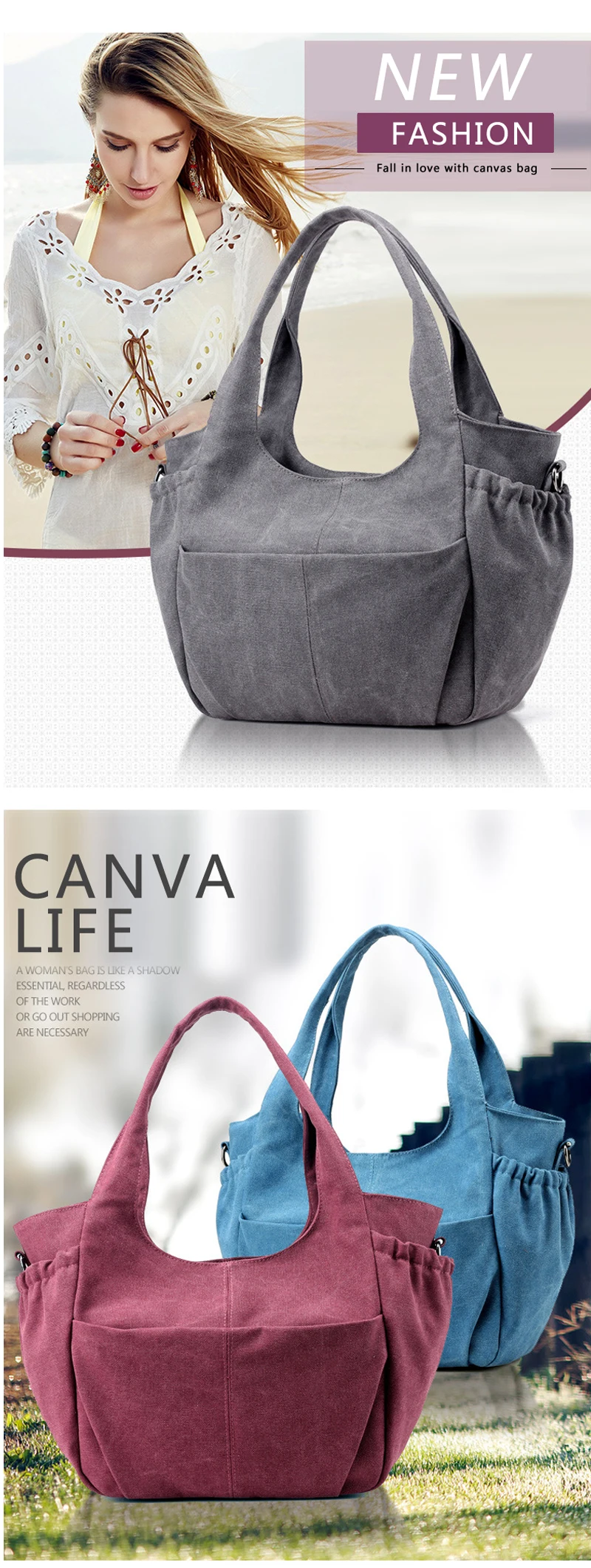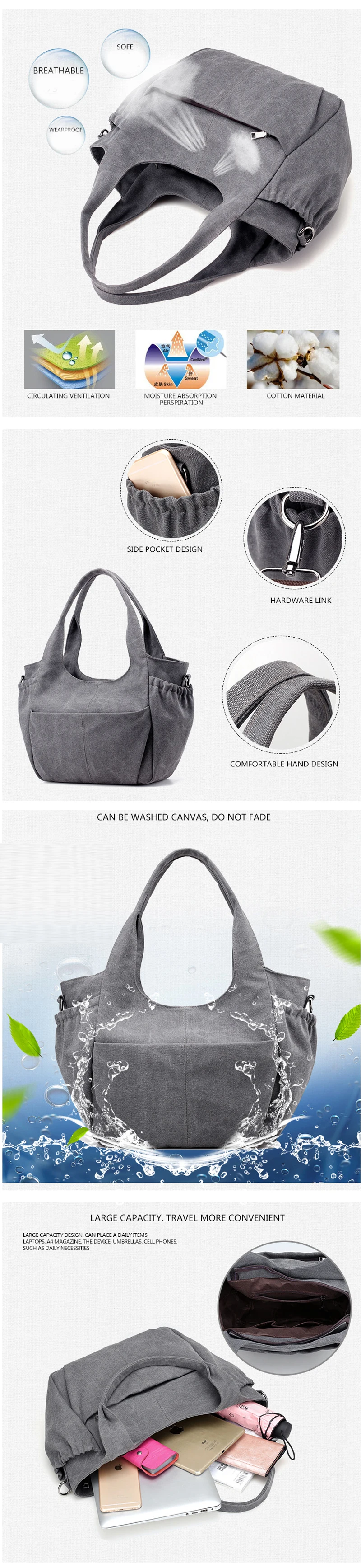 Handbags material:Canvas