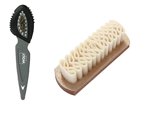 Leaves an even smooth finish on the suede without streaking, clumping or discoloring. Also great for multicolored suede. We recommend using the Woly Suede brush to help removing stains with the Suede Protector, then use the Woly crepe boot brush to bring the suede to its original texture by roughing up the suede nubuck.