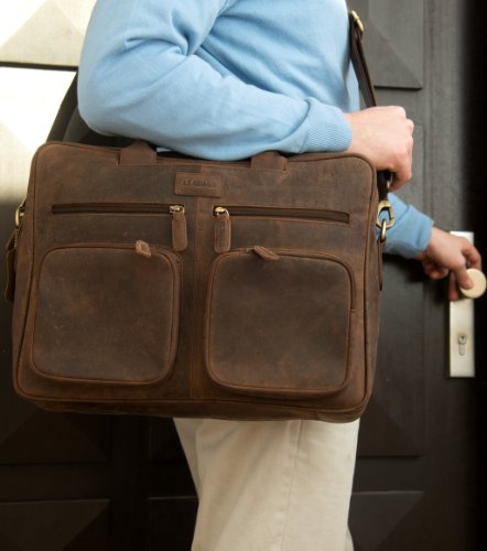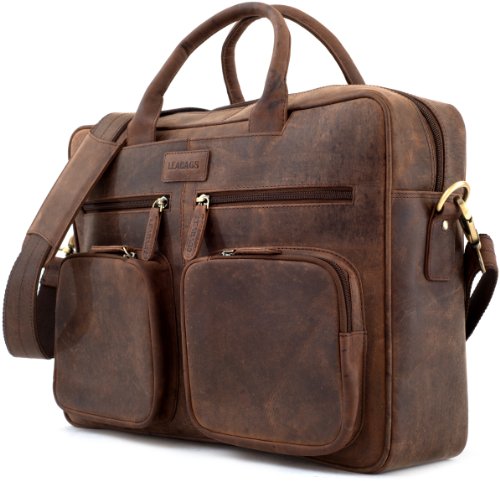 Binding : Personal Computers Product Description LEABAGS - Briefcase "DALLAS" Retro Vintage design Genuine Buffalo Leather Unisex Messenger College Office Laptop Bag
