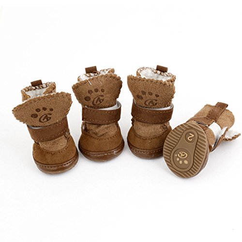 -. Title : Etopstech Winter Snow Warm Walking Detachable Closure Puppy Dog Shoes Booties Boots Brown 2 Pairs XXS