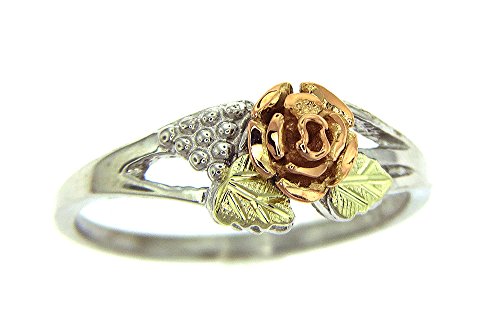 -. Binding : Jewelry -. Brand : Rich Peel -. Department : womens -. Feature : This is one of the prettiest Black Hills Gold rose bud rings in all that are made. / The body of the ring is Sterling-Silver and the Leaves are 12K lime gold to set off the 12K Pink diamond cut Rose. / It has a diamond cut rose for real sparkle. No picture could do it justice. / Lifetime warranty from the manufacture -. Label : Rushmore Gold Co -. Manufacturer : Rushmore Gold Co -. Model : 1100a -. MPN : 1100a -. PartNumber : 1100a -. ProductGroup : Jewelry -. ProductTypeName : FINERING -. Publisher : Rushmore Gold Co -. Studio : Rushmore Gold Co -. Title : Pretty Diamond-cut Black Hills Gold & Sterling Silver Rose Bud Women's Ring