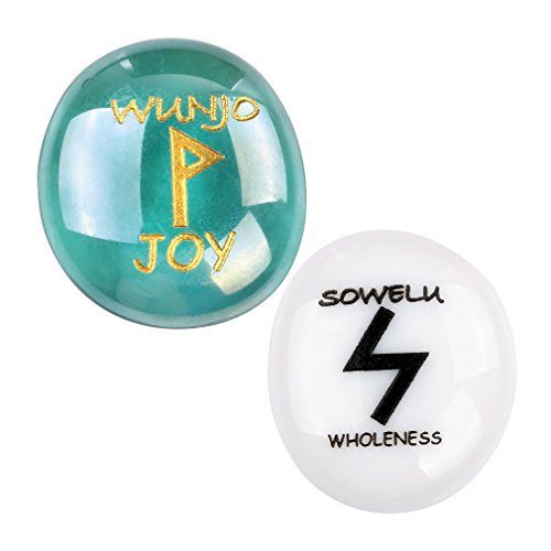Ancient Runes Joy Wunjo Jera Sowelu Inspirational Amulets Glass Stones Citrine Green Quartz Bottles Set