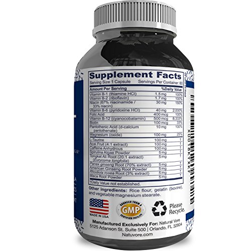 "Want more energy? DO you find yourself dosing off mid-afternoon? How about just plain old tired? POWER BAND ENERGY by Natural Vore may be the product you need! What makes this product so outstanding? Just check out these ingredients. Spirulina it improves endurance and curbs hunger. L-taurine is an amino acid and is widely used in bodybuilding because of its ability to increase energy in the muscles. Rhodiola enhances mental and physical performance. Acai berry works to give you a high amount of energy. And there are many more! This supplement is a great PRE WORKOUT to give you energy to power through your entire workout and even help you boost your muscle growth. Our products are 100% Natural and pure with NO CALORIES and NO SUGAR. They contain the highest quality ingredients. We offer a 100% Money back guarantee with all of our products. If for any reason you are unsatisfied with our products we will refund you with absolutely no questions asked. Are you ready to feel energized again? give POWER BAND ENERGY a try today! "Feature
