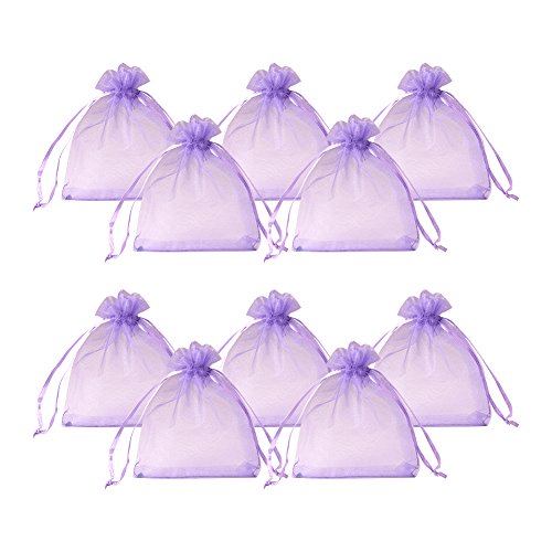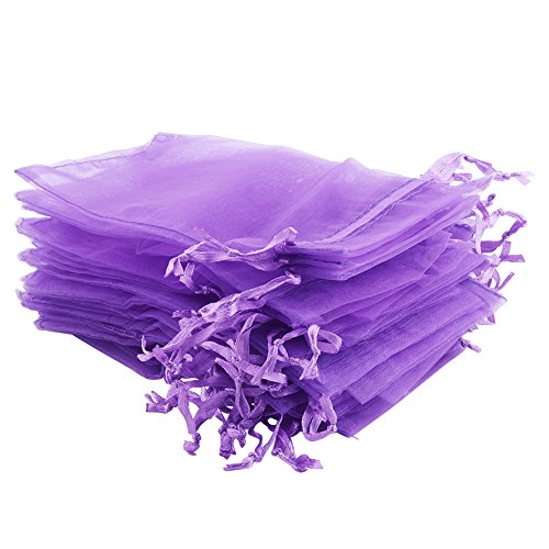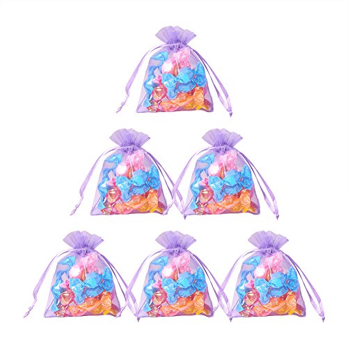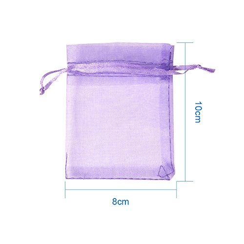 PandaHall Elite 200 Pcs Purple Organza Drawstring Gift Pouch Wrap Favor Bag for Party Wedding 4x3''