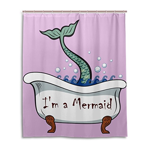 My Little Nest Cartoon I'm a Mermaid Pink Shower Curtain For Bathroom Waterproof Fabric Home Decor 60 x 72 inches