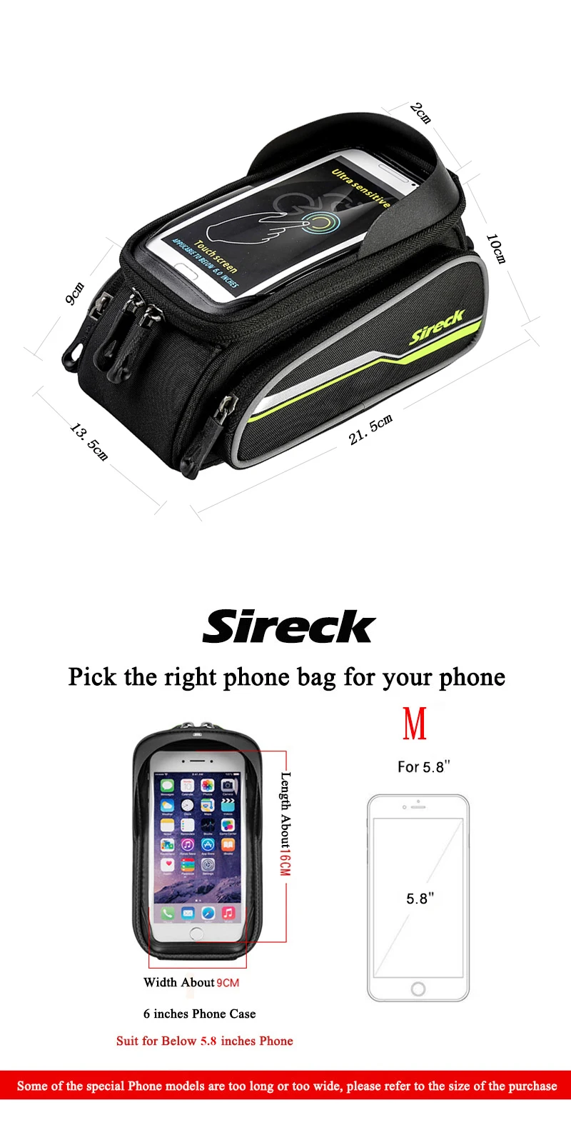 Name:Bicycle front tube phone bag