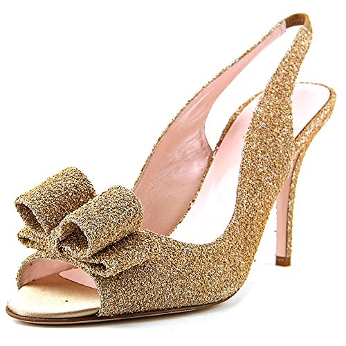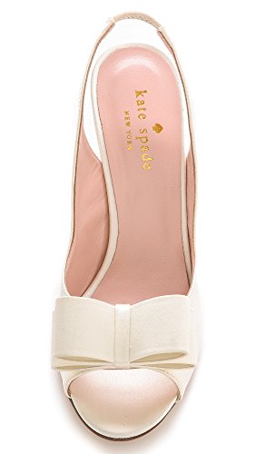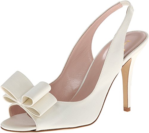 Ladylike Kate Spade New York pumps in a classic slingback profile. A layered bow trims the open-toe vamp. Covered stiletto heel and leather sole.