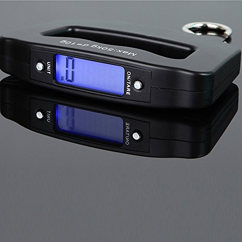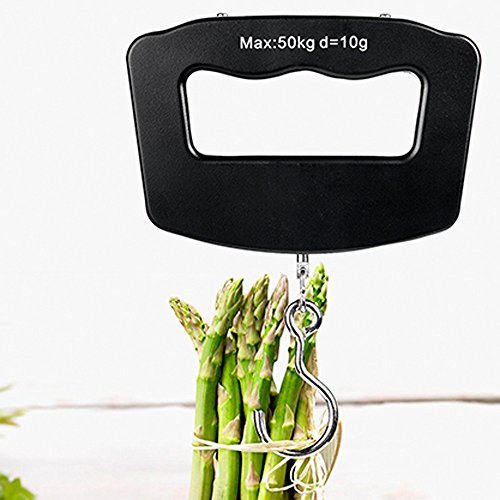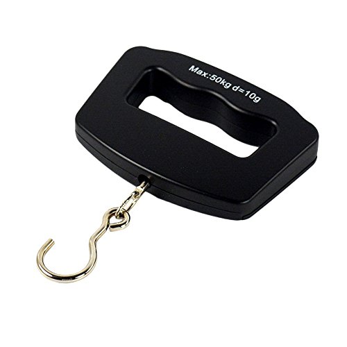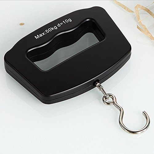 Ultra-compact design light weight, and easy to carry. Excellent quality and accurate weight. 50kg capacity with 10g readability. 4 selectable units: g, kg, lb, oz 2 button: ON/Tear and UNIT LCD screen display with blue background light. Stainless steel hanging hook. Auto power off after 30s or manually power off instantly. Easy to carry it in a pocket or handbag for weighting on travel. Color: Black Capacity accuracy: 50kg * 10g Units: g, kg, lb, oz Power supply: 2 * AAA batteries (not included) Auto off: 30s Material: ABS plastic Item size: 12.5 * 9.3 * 2.5cm