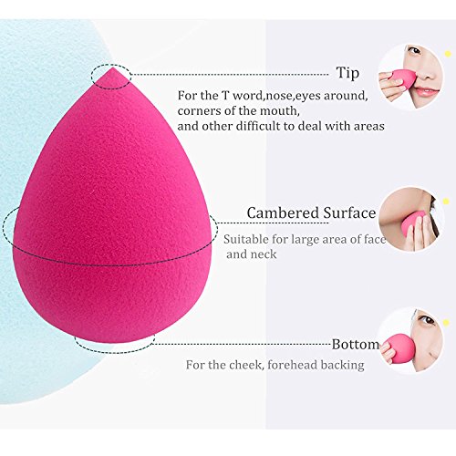 Makeup Sponge: Latex Free, Non-toxic, No Smell, Egg-shape makeup blender provides three types of use: The rounded end of the sponge is great for blending on the cheeks, while the precision of the sponge's tip makes covering minor imperfections easy. Use the flat edge around the nose and eyes for contouring. It cam be used dry or wet
