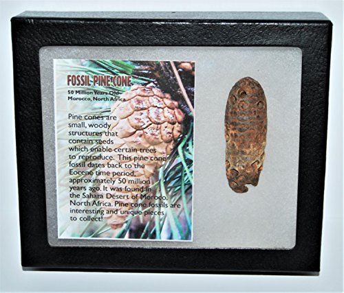 Studio : Fossils, Meteorites, More Publisher : Fossils, Meteorites, More Binding : Toy Product Description This is an interesting piece. It is a fossilized pine cone that dates back to the Eocene time period, approximately 56-34 million years ago! This fossil was found in Morocco, North Africa. The pine cone measures approximately 2 1/2 inches in length. Included with the fossil is a nice glass-topped display box and certificate of authenticity. We have a variety of fossils available so check out our other listings! 0