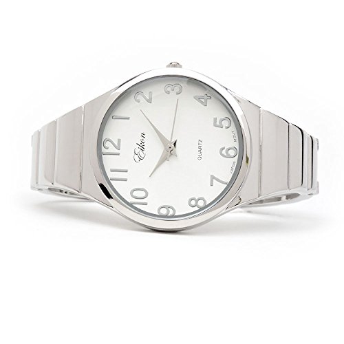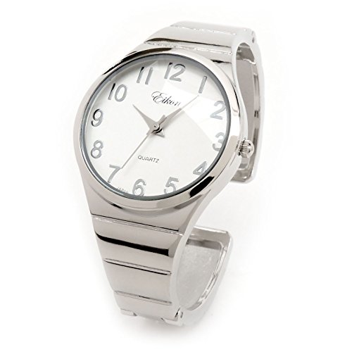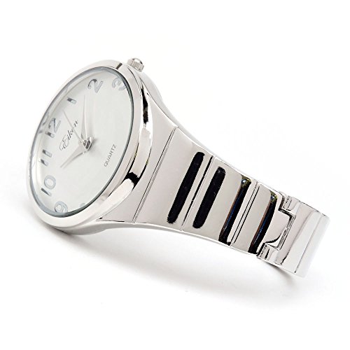 FTW Silver Metal Band Large Case Easy to Read and Fashionable Women's Bangle Cuff Watch