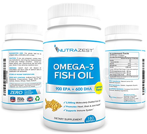HIGH STRENGTH & HIGH PURITY Fish Oil supplements by Nutrazest deliver 1,800mg of Omega 3 fatty acids per serving to promote the health of your joints & boost your cognitive functions- all the while improving your immune system by natural means!