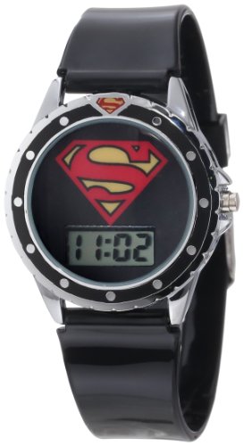 Black silicone strap watch Superman logo on digital dial Buckle closure Round case Not water resistant Brand : DC Comics Item model num : SUP4019 MPN(PartNumber) : SUP4019 EAN : 0030506320074 Package Dimensions(LxWxH) : 8x8x8cm ; 113 g