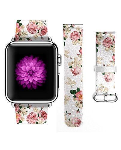 Apple Watch Strap iWatch Genuine Leather Replacement Watch Band Buckle Watch Strap Design for Apple Watch for Woman (42mm) Vintage Floral Pattern