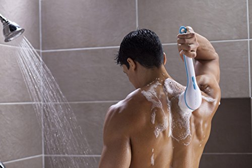 -. Feature : Requires 3 AA batteries - batteries not included / Includes five attachments: microderm, massage, brush, pumice and cleansing head & requires 3 AA batteries / Long handle makes reaching your back and lower legs easier / Fills with soap: works with your favorite soap or body wash for every day cleaning / Helps promote healthier, younger looking skin and instantly soothes tired achy muscles