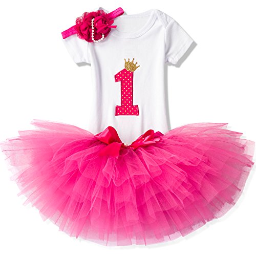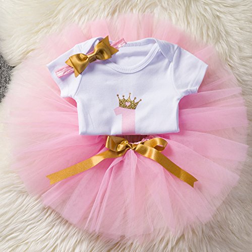 Attractive printed "1" and including the Gold Crown pattern in the middle of the shirt, skirt with breathable multi-layered tulle tutu design perfectly match soft hemline. The pink headband are decorated with gold bow, make your girl more attractive and cute. Suitable for daily wear and special occasion like wedding party, holiday party, ceremony, baptism, birthday party, pageant etc.