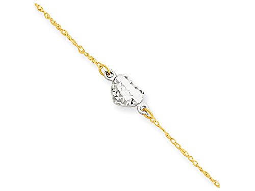 -. Title : 10 Inch 14k Two-tone Puff Heart 9in with 1in Ext Anklet