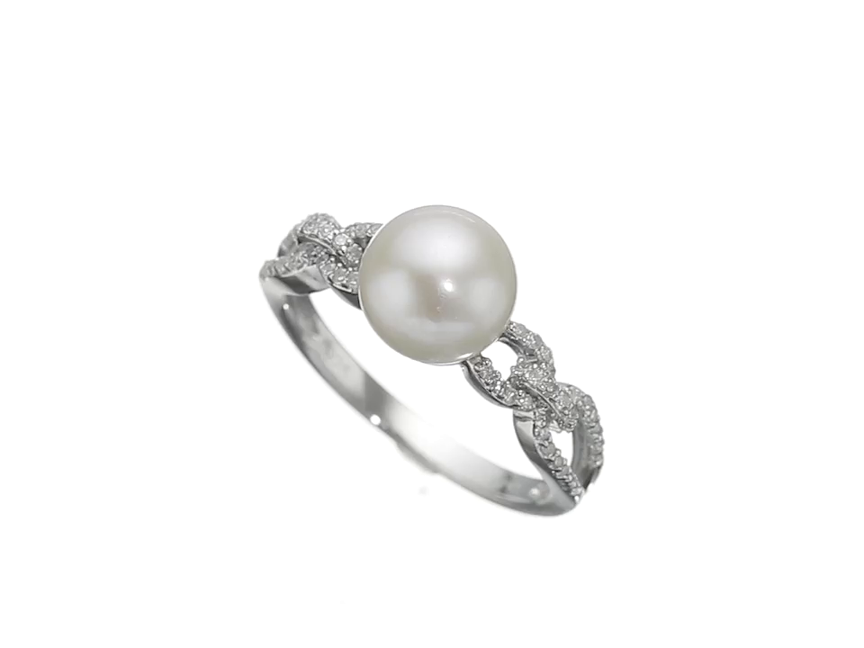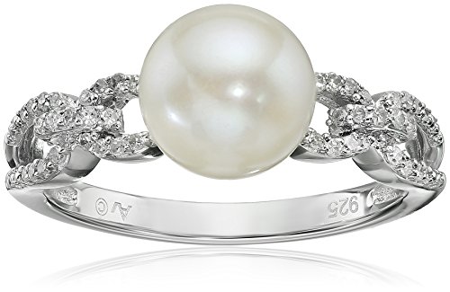 Sterling Silver Freshwater Cultured Pearl Diamond Ring (1/10cttw, I-J Color, I2-I3 Clarity), Size 7