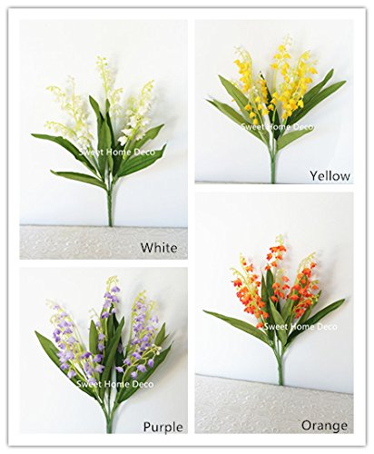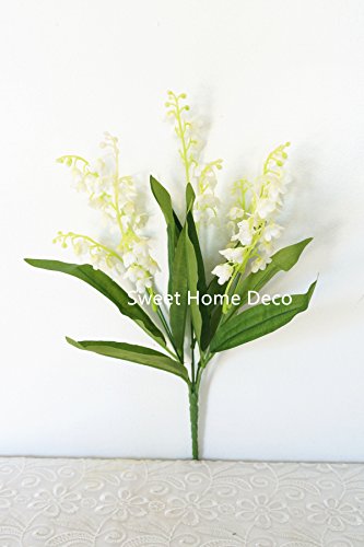 Sweet Home Deco 12'' Silk Lily of the Valley Artificial Flower Bush (5 Stems w/ Flower Heads) (3, White)