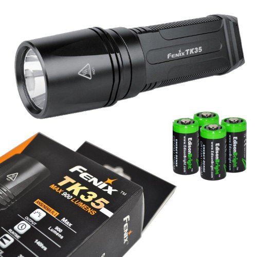 FENIX TK35 XM-L2 U2 900 Lumen Tactical LED Flashlight with 4 X EdisonBright CR123A Lithium batteries, Holster & Lanyard bundle