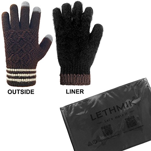 Binding : Apparel Product Description LETHMIK Kint Gloves. LETHMIK Unique Knit Winter Gloves Mens Thick Warm Wool Lined Touchscreen Texting Gloves; this gloves is made of High Quality Acrylic Material with super soft and warm Wool lined, Unique Knitted, Build a simple and stylish Knit Construction style, the Unique and Practical 3 Touchscreen Fingers Capability design, very Convenient and Great for Texting/Typing/Writing in cold winter; Comfortable and high quality gloves material with excellent elasticity, Stretches to fit most hands, You can easily get a custom fit according to your hands. Pair off with your favorite Outfit. It's an excellent choice for Gifts or Your Own Dressing. Buy more for your friends and family. Please check genuine authentic item tag to avoid counterfeit products.Counterfeiters are capable of copying the appearance of lethmik items but there're no "LETHMIK" tags and our packing. Product Care Instructions:Do not wash by hot water; Do not chlorine bleaching; Hang dry in shade; Do not iron; Hand Wash or Spot clean recommended! Please Try Not to Machine Wash or Brush Wash (In order to avoid Pilling). Our customer service Email address is: customerservice@lethmik.com ; You can feel free to contact us if you would have any questions, and we will try our best to bring you with the best services. 0