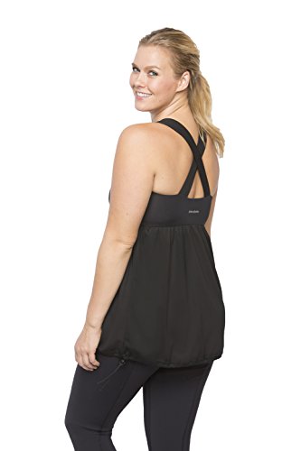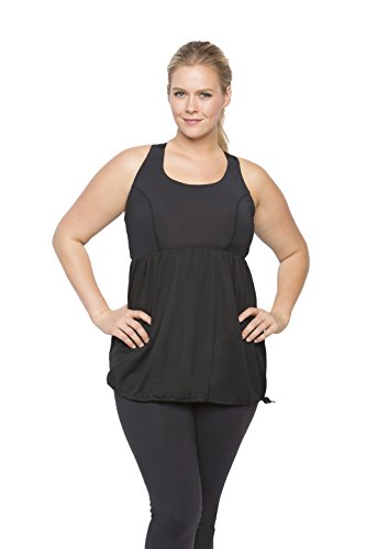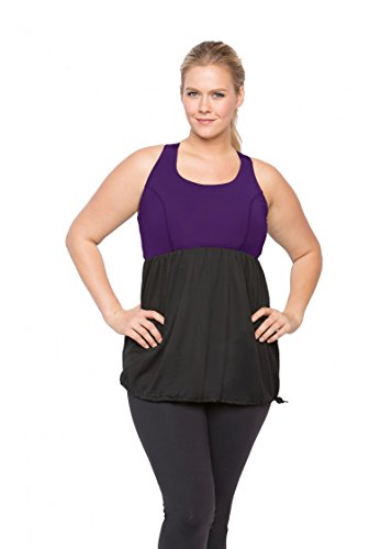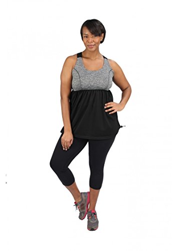 Binding : Apparel Product Description Soft to the touch, smooth and silky against the skin, this activewear top is the answer for any woman looking to camouflage the stomach area. A-line cut allows for a flowing fit without being fitted, so it hides the entire mid-section area, all while providing great support. May be worn alone or over sports bra. Higher neckline keeps the girls fully undercover during exercises. Adjustable cord lock keeps your tummy covered by locking the shirt in place. Made in America Nylon/ spandex bra 100% polyester skirt Full shelf bra Mid Coverage Neckline Empire shape Full tummy camouflage Supportive criss-cross back straps Adjustable cord lock Breathable mesh Flat Lock Stitching to avoid chafing Hip length Quick Drying Natural Moisture Wicking Fade Resistant Wrinkle Resistant Machine Wash Cold / Hang Dry or Tumble Dry Low Heat 0