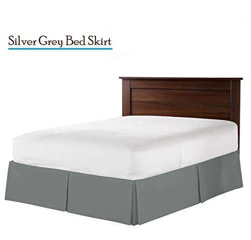 HH Linen 400-Tc 100%Cotton Split Corner Tailored Bed Skirt - 20 Inch Drop, Solid Bed-Skirt 1Pc With Platform (Available In All Sizes And 26 Colors) Queen Silver Grey