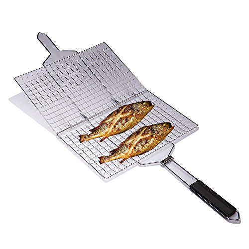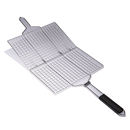 Lockable grill grate locks foods in place and enable easy flipping of grilled foods, ideal for grilling fish, vegetable, meat, seafood, shrimp and other delicate foods