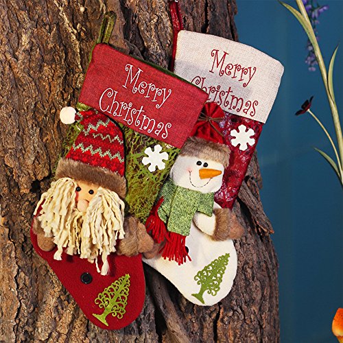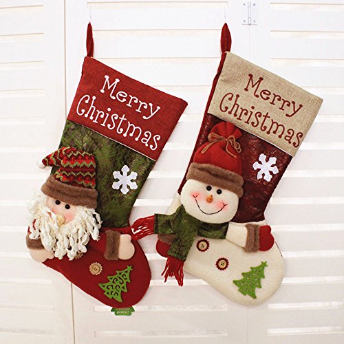2PCS Christmas Stockings Cute 3D Santa Claus and Snowman Toys Stockings Hanging Ornament Set