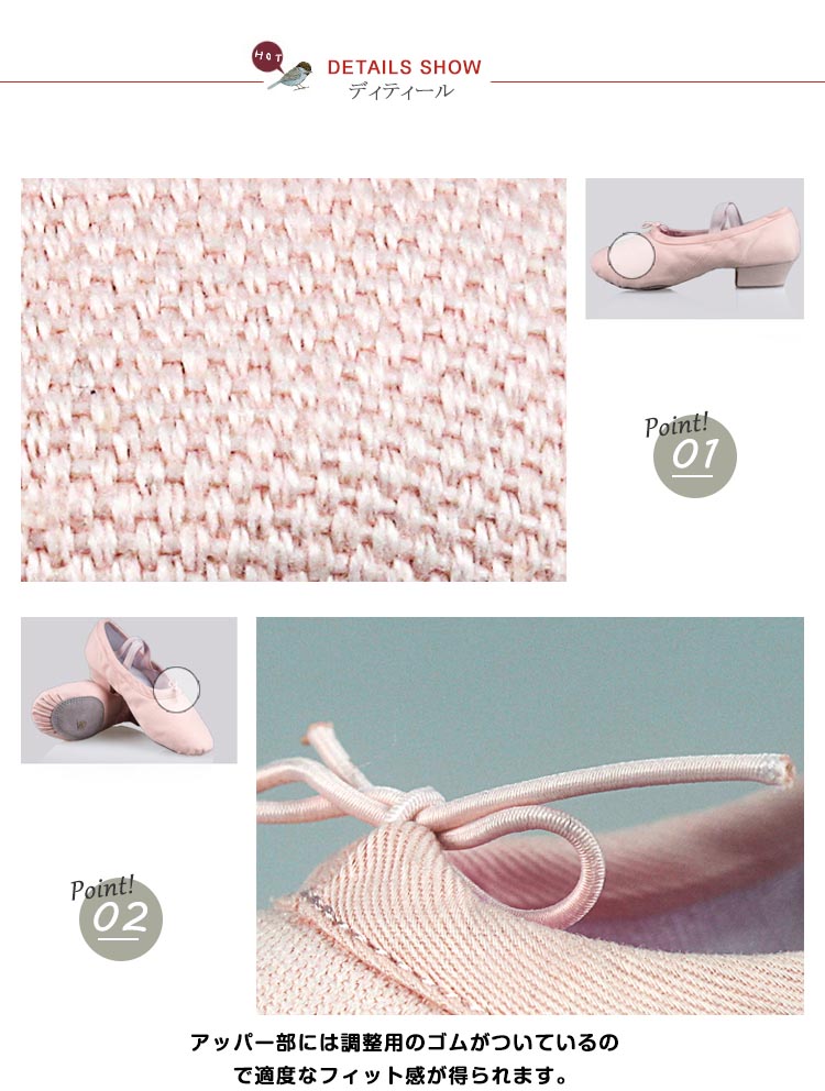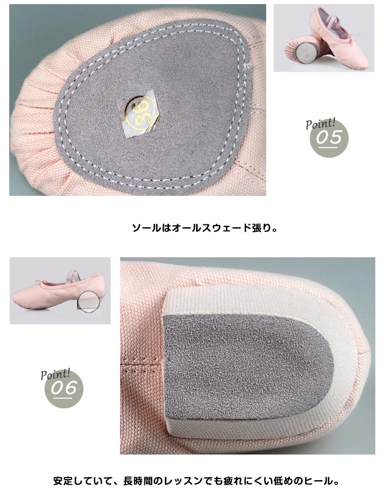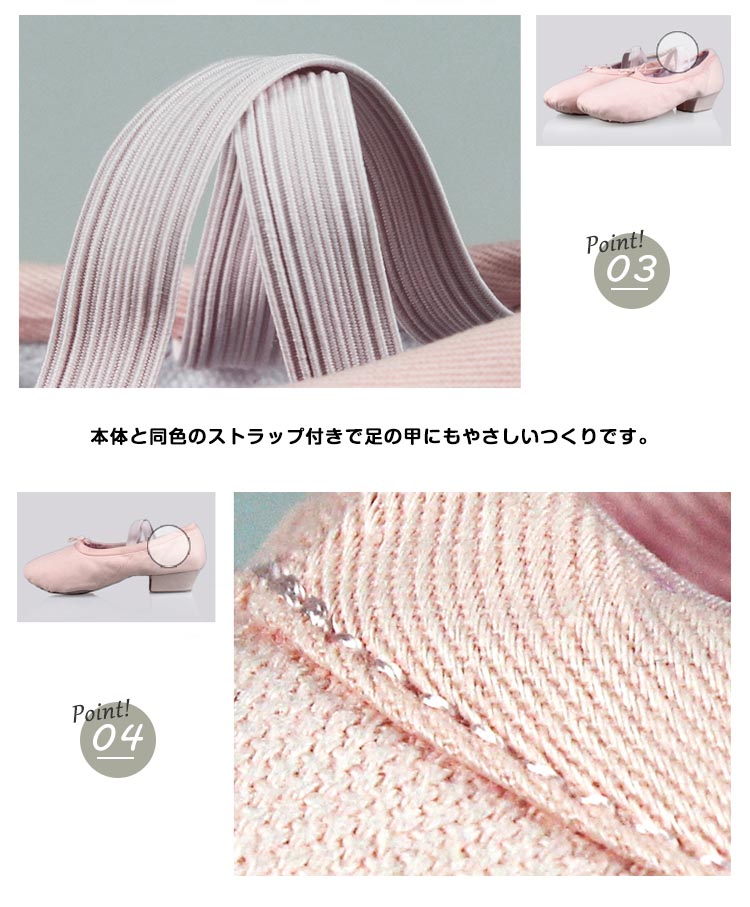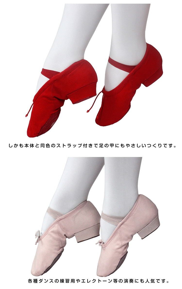 | 柔らかく、足裏感覚をつかみやすいダンスシューズ。安定していて、長時間のレッスンでも疲れにくい低めのヒールもポイント!しかも本体と同色のストラップ付きで足の甲にもやさしいつくりです。各種ダンスの練習用やエレクトーン等の演奏にも人気です。 | |