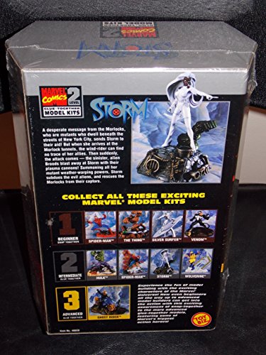 Studio : Spectra Star Kites Publisher : Spectra Star Kites Amazon.com As the Marvel comic book story goes, the wind-rider Storm has rushed to the aid of the Morlocks, a group of mutants that dwell beneath the streets of New York. Just as she sets out to rescue them, she is attacked by the sinister aliens called Broods. This 10-inch-tall model depicts the white-haired warrior as she summons all her weather-warping powers to subdue the evil aliens. It's a level 2 model, meaning the 35 plastic pieces have to be patiently glued together (level 1 models simply snap together) and carefully painted in order to resemble the picture on the box cover. The assembly instructions are straightforward with the help of numbered parts, but glue and paint are not included. Hannah Reynolds 0