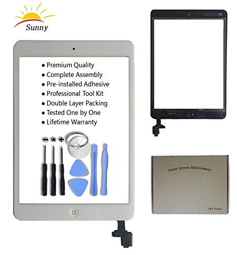 iPad Mini1 Mini2 White Screen Replacement Touch Screen Digitizer Glass Assembly - Includes Home Button Camera Holder Pre Installed Adhesive Stickers and Professional Tool Kit