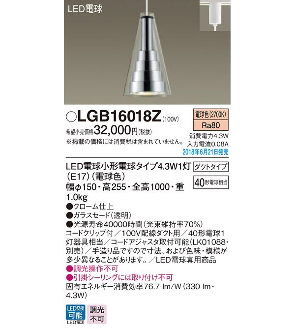 ●光源:LED電球小形電球タイプ4.3W1灯(E17)(電球色)、色温度:2700K、光源寿命40000時間(光束維持率70%)