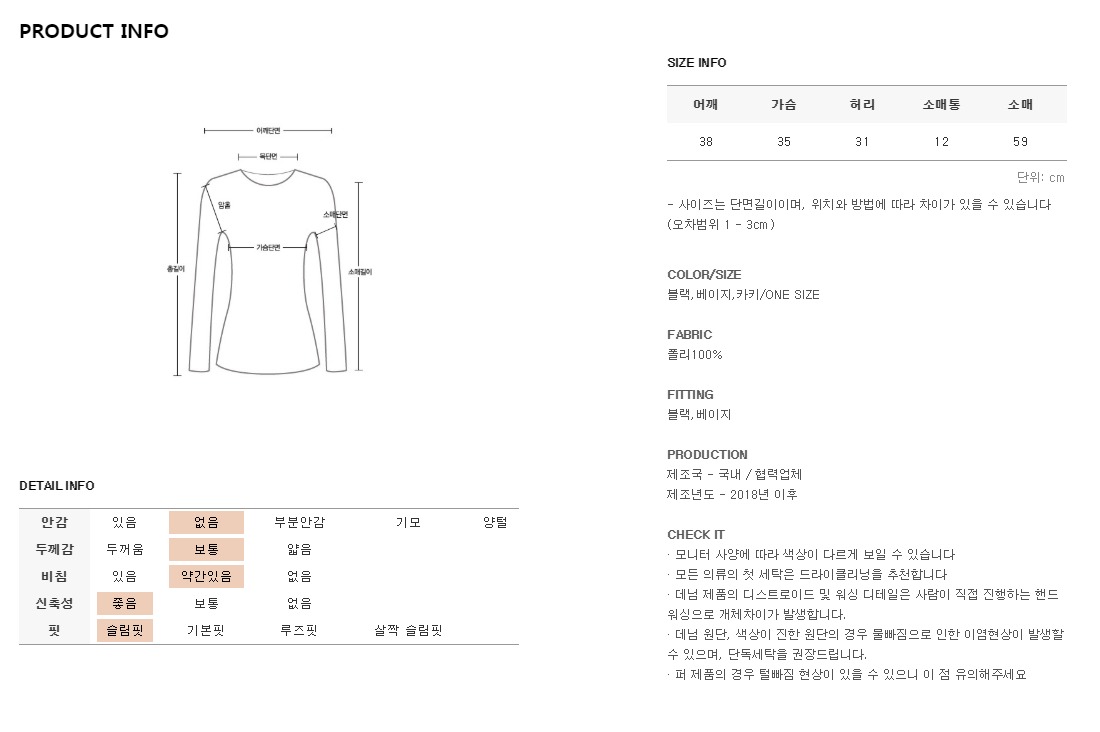 쫀쫀한 사선골지 짜임으로 편안하면서 상체라인이 굉장히 예뻐보이며