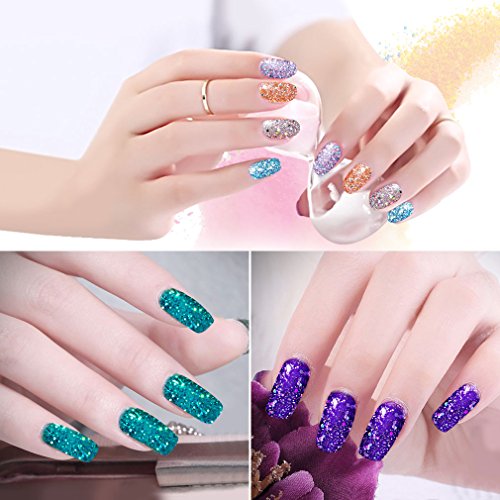 -. Feature : INCLUDED: 6pcs glitter gel nail polish,6 different well-selected color / EFFECT:With Glitter Sequins,it will showing a beautiful bling color like a neon under the light, which is very attractive / FEATURE:Environment-friendly products with healthy ingredient, low smell, NON-TOXIC, wide selection of colors / USAGE:Dry under UV or LED lamp,this will allow nail polish long lasting for at least 2-3 weeks / Suitable for natural nails, UV gel nails, false nails, acrylic nails, nail tips, etc. Perfect for professional salon beauty shop or at home personal use