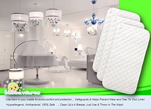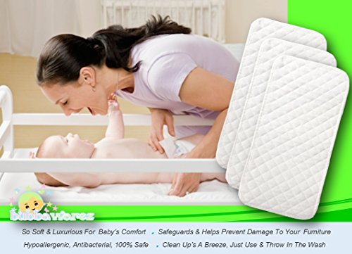 * HIGHLY ABSORBENT - Made With A FINELY QUILTED DESIGN To Trap Air, Providing A Soft CUSHION COMFORT PADDING - No More Chilly Or Uncomfortable Backs. Bamboo Top And TPU Waterproof Backing Which Prevents Leaks To Protect Your Furniture, Keeping It FRESH, CLEAN & STAIN FREE - Providing Your Baby With The Ultimate In Comfort So Your Baby Will Be Content! Extra Large Sizing 26" x 12.5" To Cater For Your Growing Infant. White Covers Suitable For Boys, Girls And Adults!!